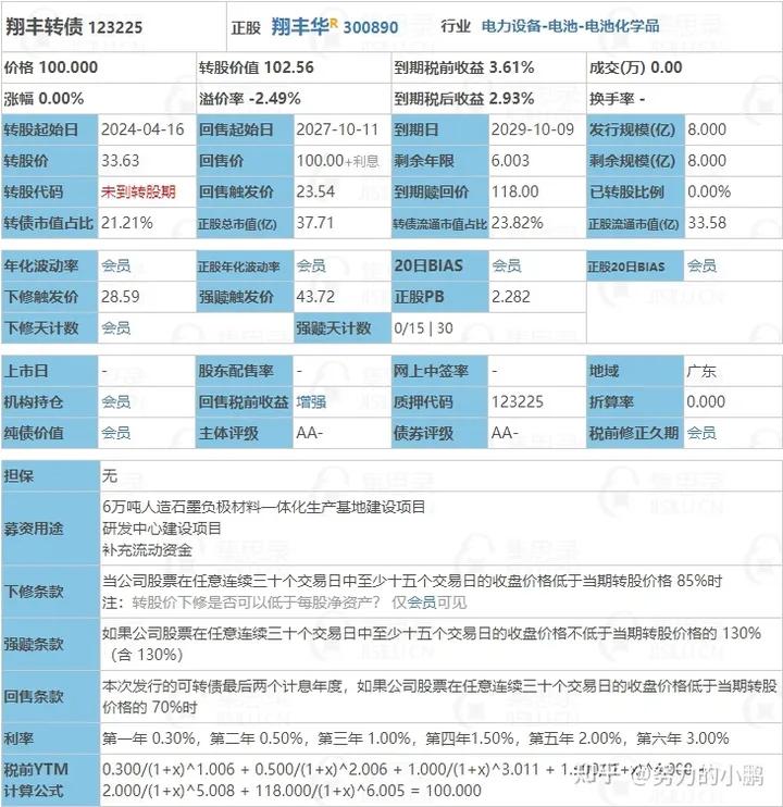 翔丰转债:(申购代码:370890,配债代码:380890,正股简称:翔丰华,正股代码:300890)
