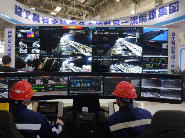 走马观花转了一圈后,记者被神东煤炭集团(隶属于国家能源集团)与天玛公司合作开发的自主智能割煤技术演示台所吸引,停下来驻足观看。