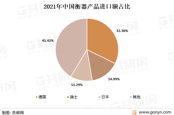 衡器累计进口总额2.09亿美元,德国进口总额6759万美元,占衡器进口额的32.30%,同比增加48.25%;瑞士进口总额3137万美元,占衡器进口额的14.99%,同比增加19.53%;日本进口总额2362万美元,占衡器进口额的11.29%,同比增加10.84%。